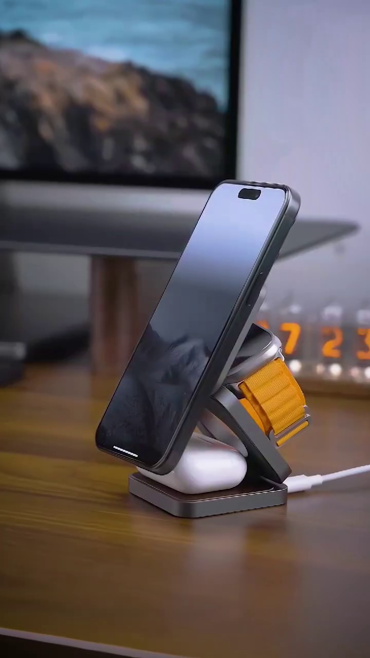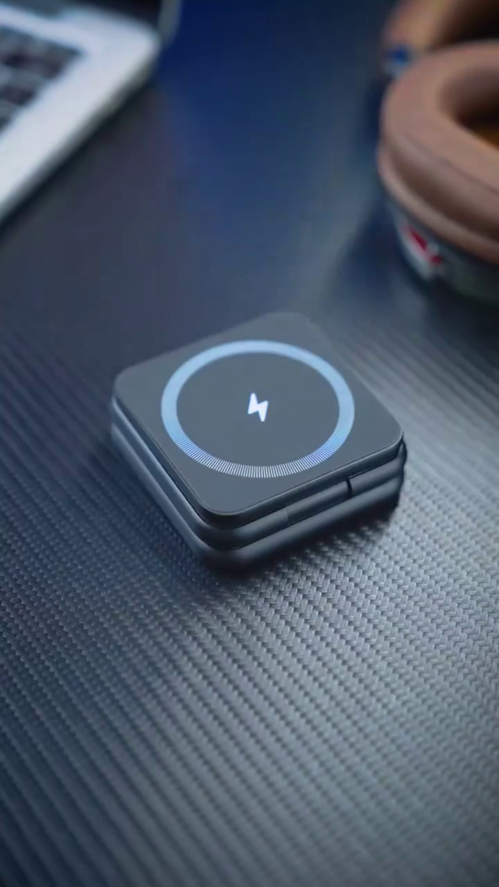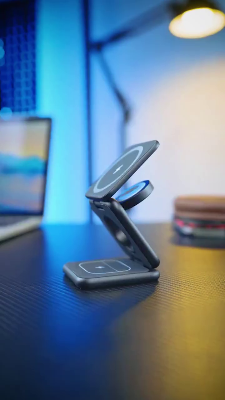 Say goodbye to messy cables and separate chargers. This foldable 3-in-1 magnetic wireless charging station is a future-ready solution that keeps your essential tech fully powered and elegantly displayed, wherever you are.