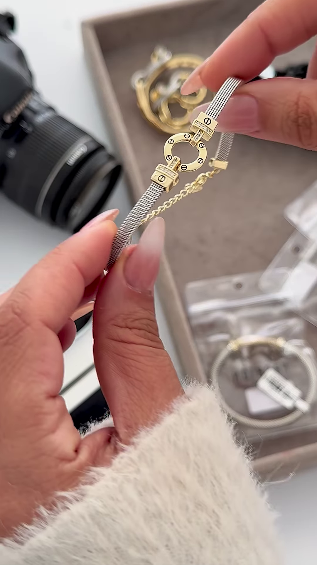 Adding a touch of subtle glamour to the bracelet are delicate sparkling accents. These may be small crystals or simulated diamonds embedded within the clasp or subtly placed along the mesh band. These sparkling elements catch the light and add a hint of sophistication and elegance to the bracelet, making it suitable for both casual and more dressed-up occasions in Ahmedabad.