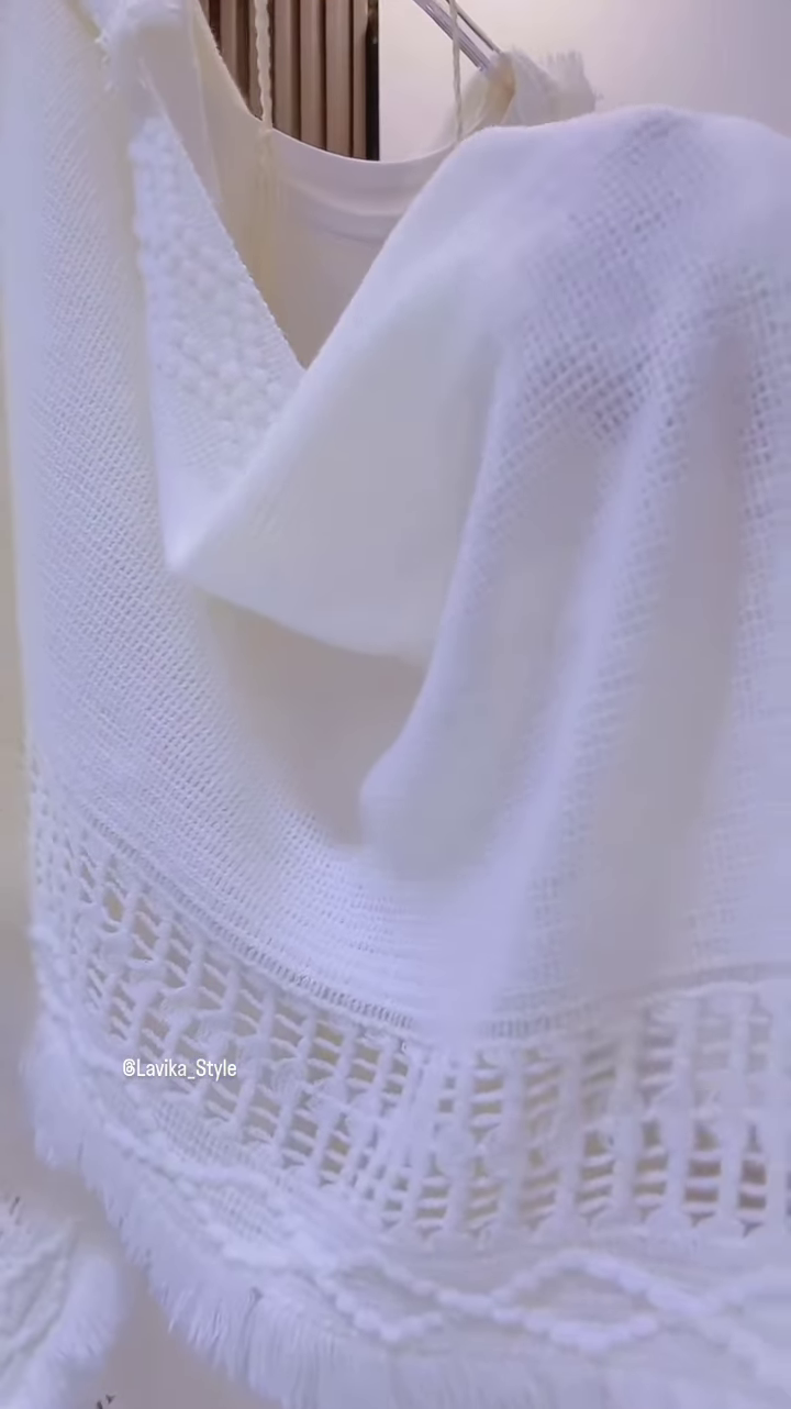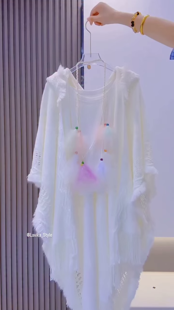 This unique and stylish top is a true statement piece, perfect for anyone who loves bohemian flair and effortless style. It’s an ideal choice for casual outings, a day at the beach, or a relaxed weekend getaway. This top combines a comfortable, flowing silhouette with playful fringe details and intricate knit work, making it a versatile and fashionable addition to your wardrobe.