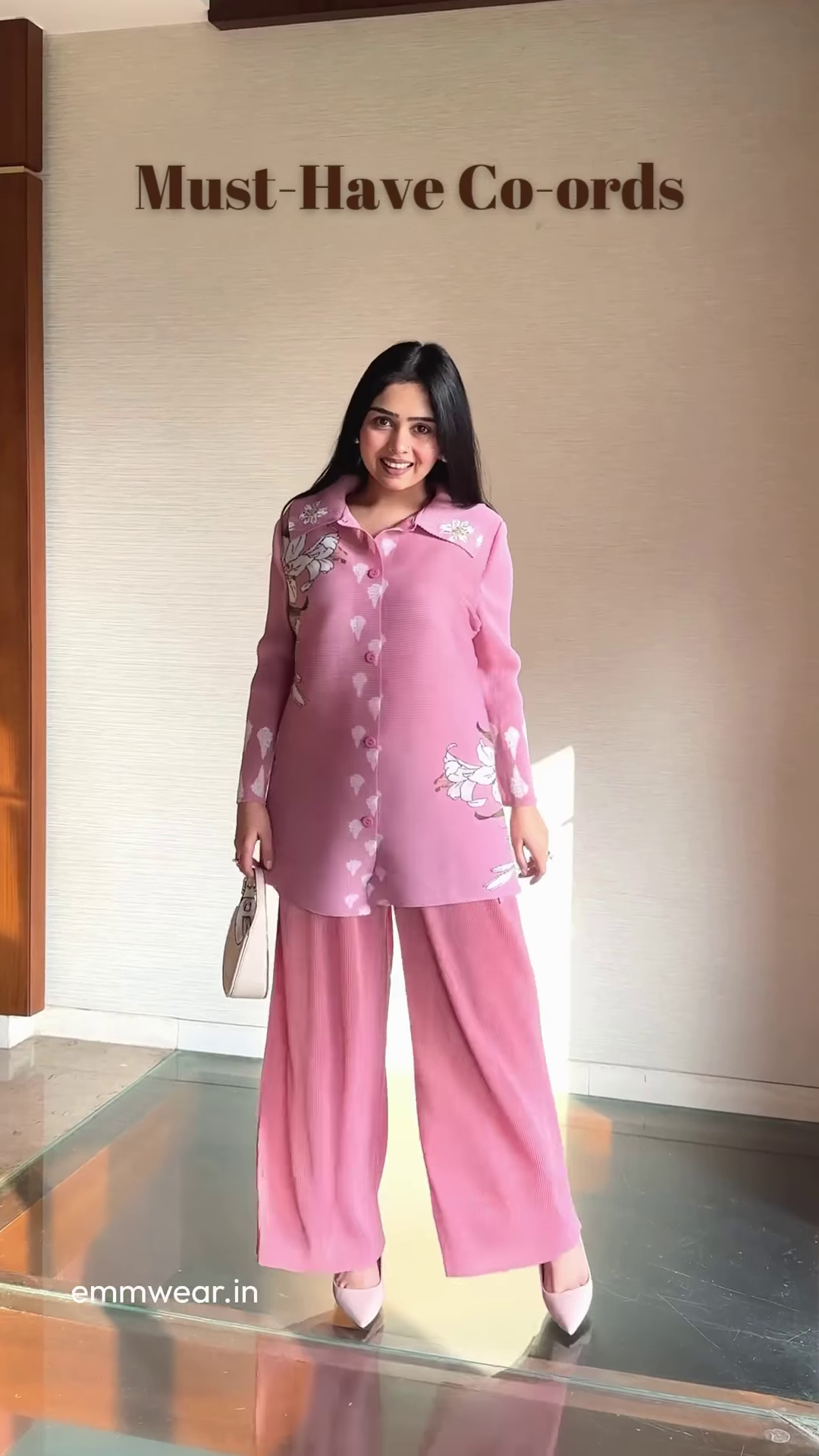 stylish and contemporary women’s outfit, featuring a striking combination of pleated wide-leg pants and a modern ombre blazer. The ensemble exudes a sophisticated yet fashion-forward vibe, perfect for making a statement with effortless elegance. The outfit is complemented by a structured black handbag, adding a touch of classic refinement.