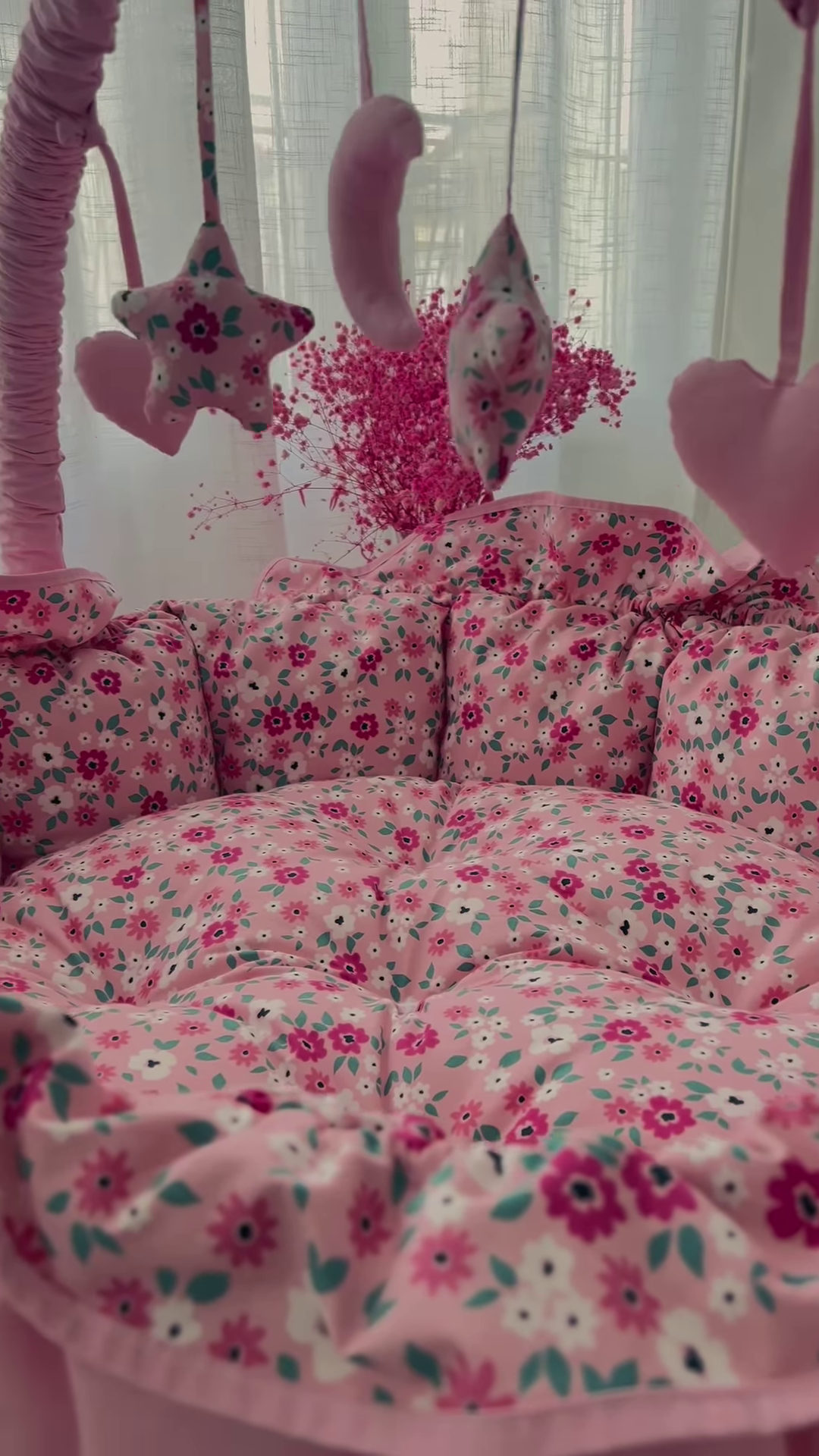 This cozy baby bouncer seat with a floral print and hanging toys is an essential item for new parents in Ahmedabad, Gujarat, India, providing a safe, comfortable, and engaging space for your baby to relax and play. Its soothing motions and stimulating toys make it a valuable aid in keeping your little one happy and content in your home.