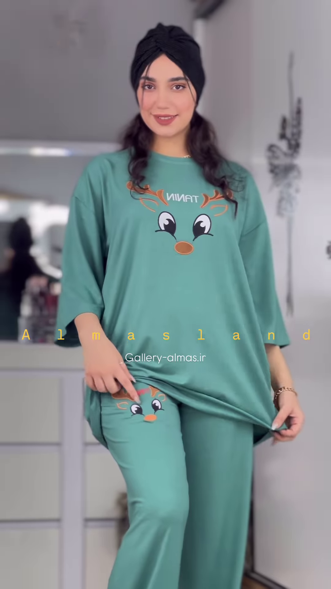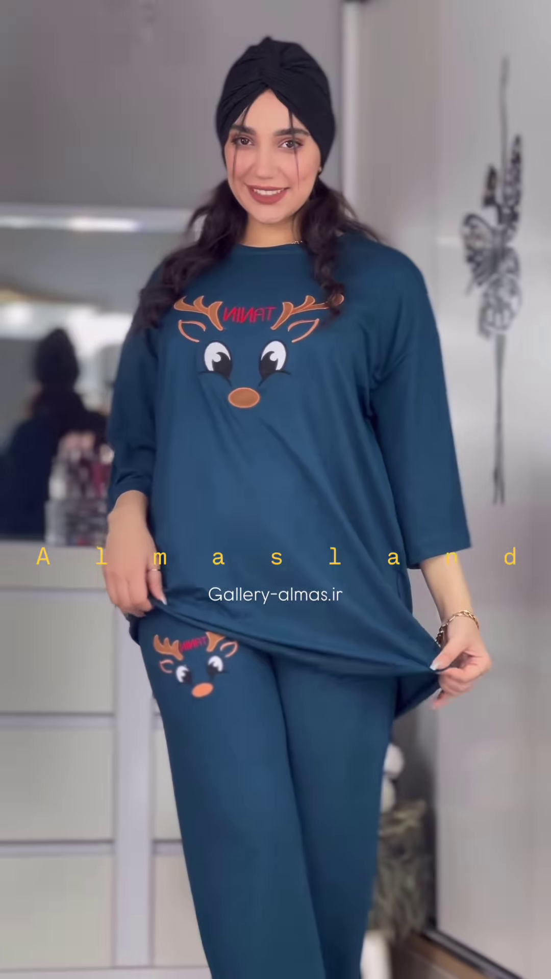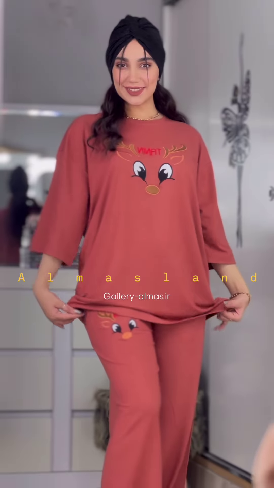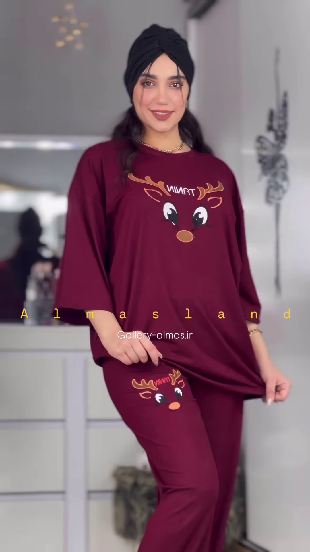 The matching pants are designed with a comfortable elasticized waistband, ensuring a snug yet gentle fit. The long length of the pants provides warmth and comfort, making them ideal for cooler nights in your Ahmedabad home. Similar to the top, the pants also feature the same cute reindeer graphic, either as a repeating pattern or a single design on the leg, creating a coordinated and charming pajama set.
