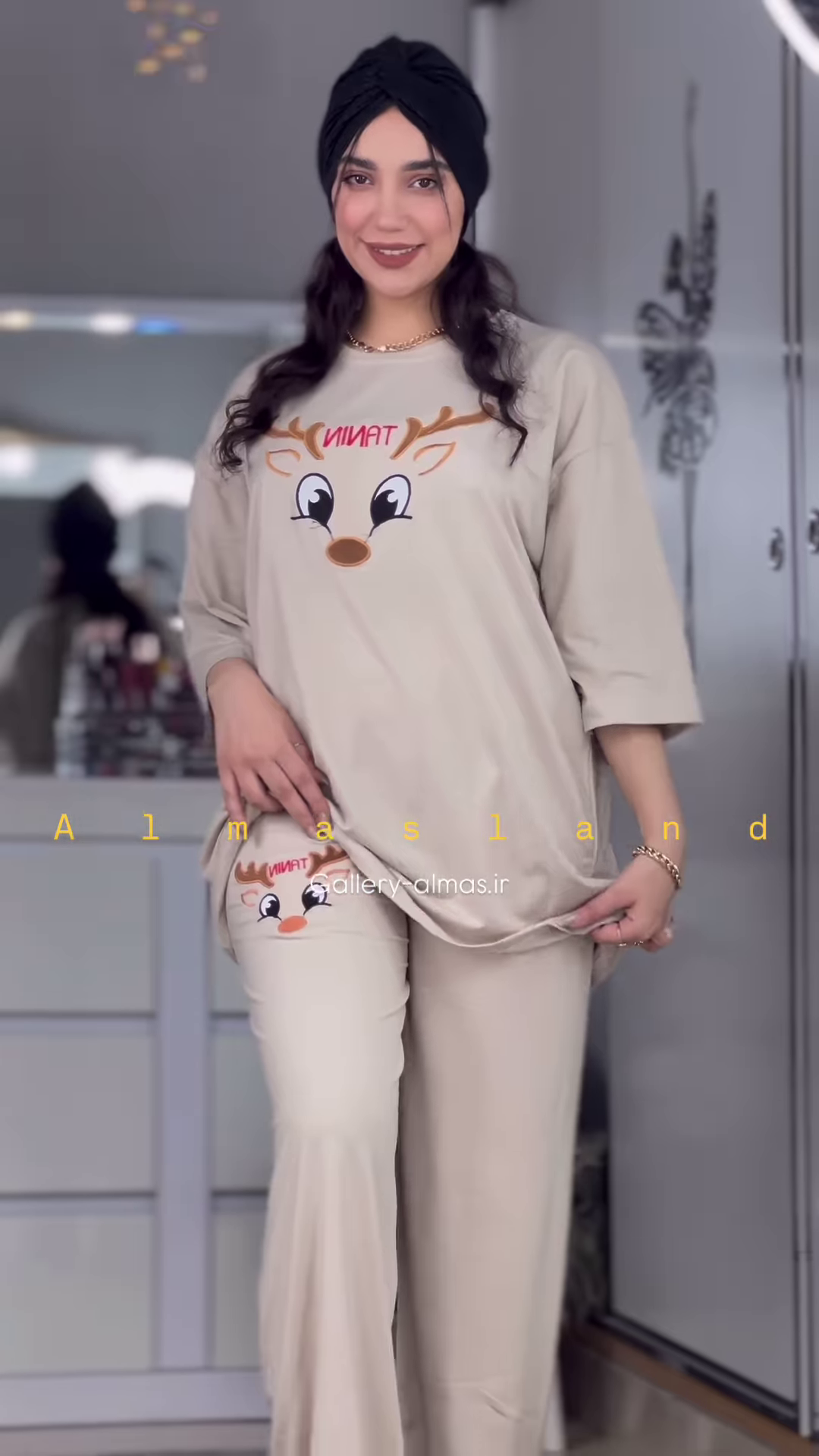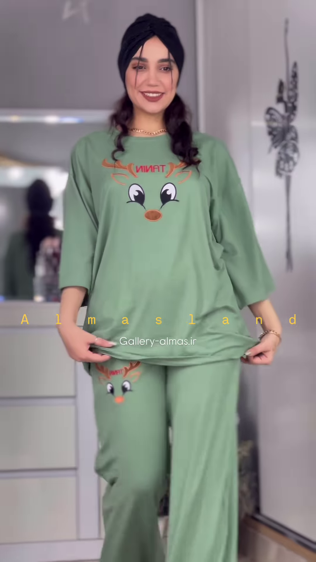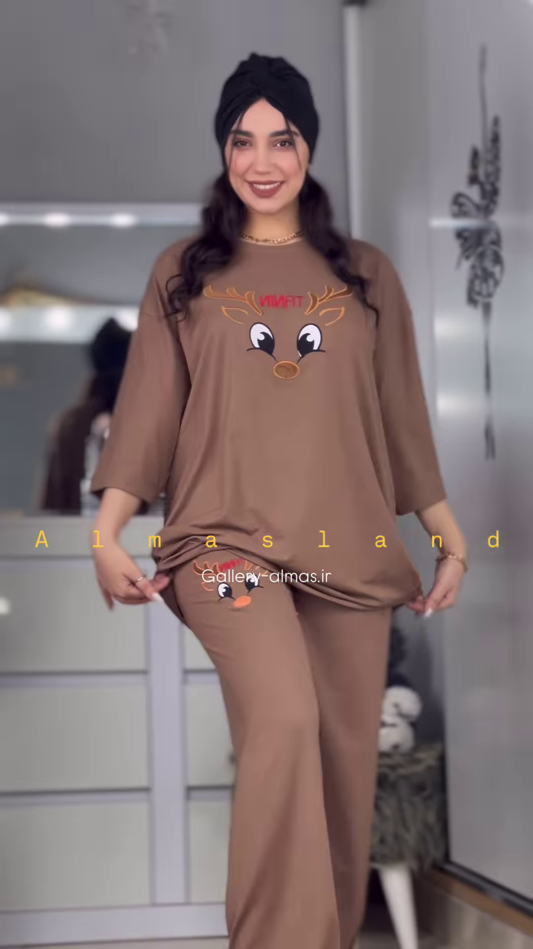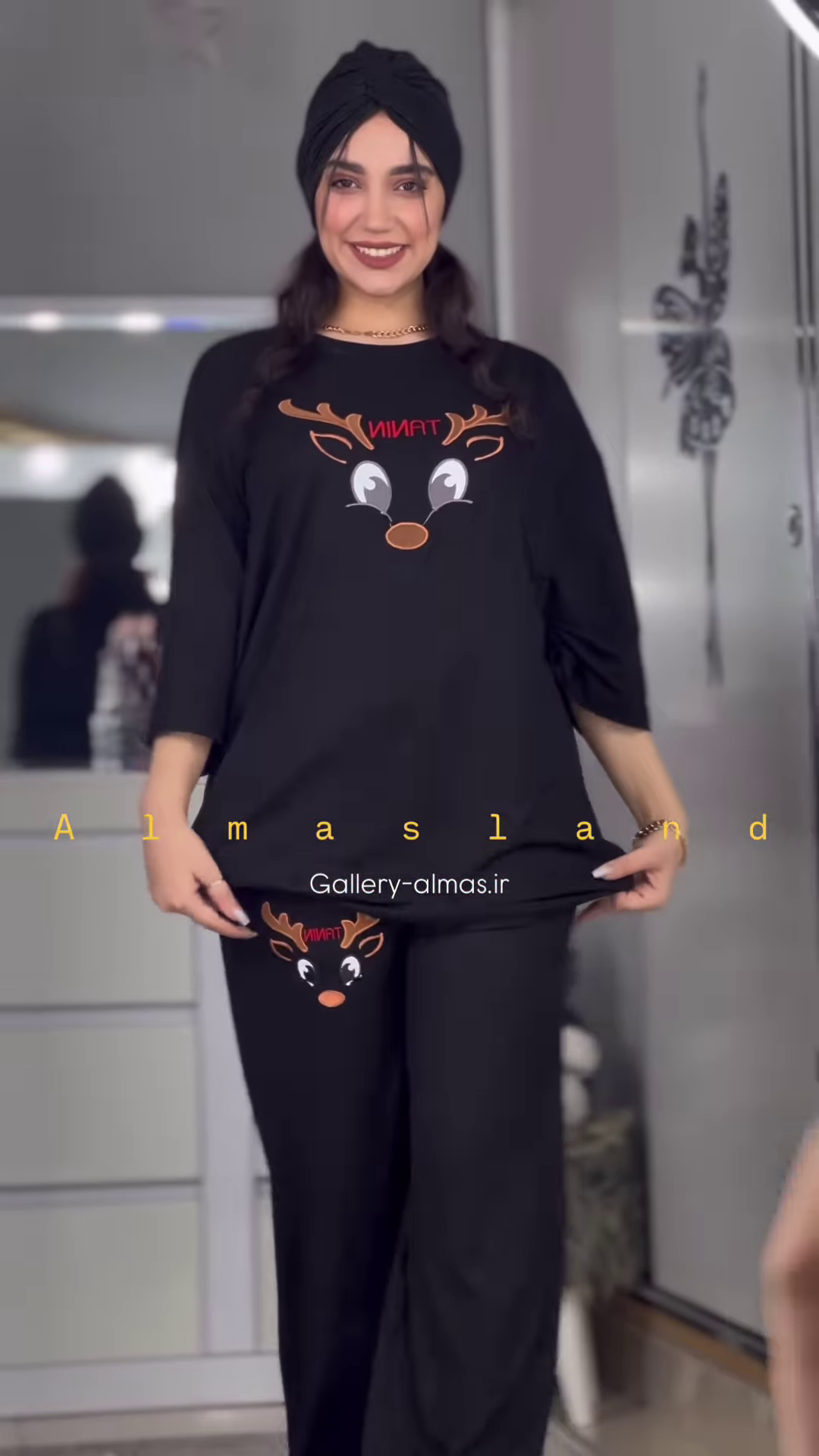 The matching pants are designed with a comfortable elasticized waistband, ensuring a snug yet gentle fit. The long length of the pants provides warmth and comfort, making them ideal for cooler nights in your Ahmedabad home. Similar to the top, the pants also feature the same cute reindeer graphic, either as a repeating pattern or a single design on the leg, creating a coordinated and charming pajama set.