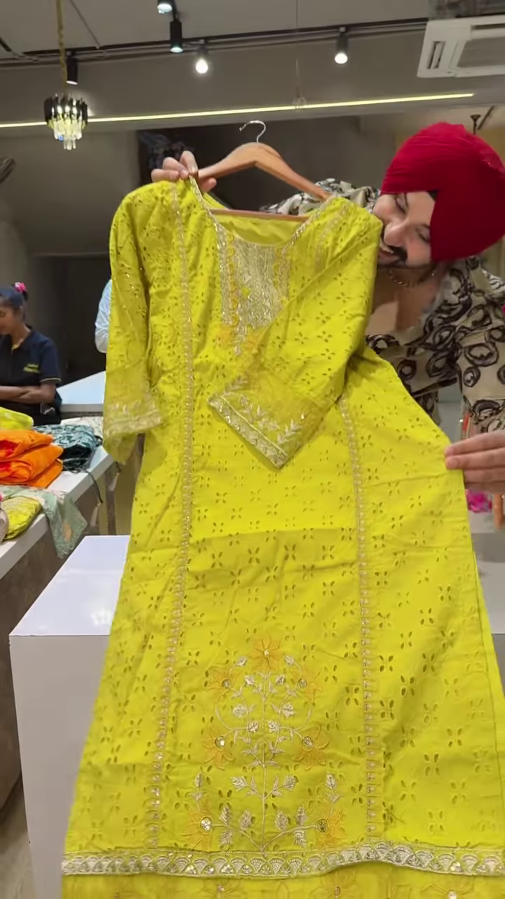 A standout feature of this outfit is the intricate embroidery around the neckline. The embroidery showcases traditional artistry, with fine threadwork that adds texture and richness to the garment. The neckline is designed to be modest yet elegant, making it suitable for both casual and festive wear.