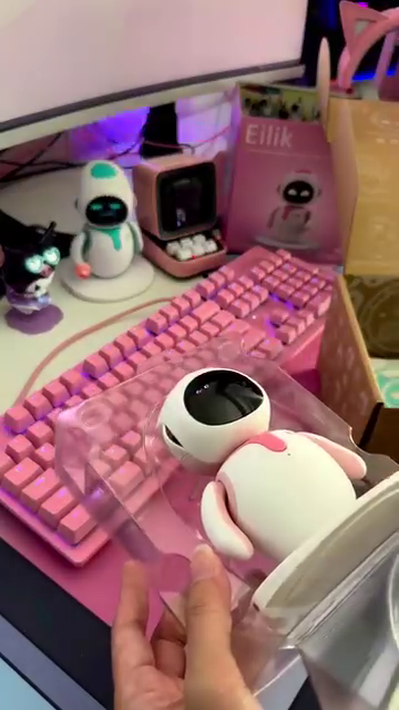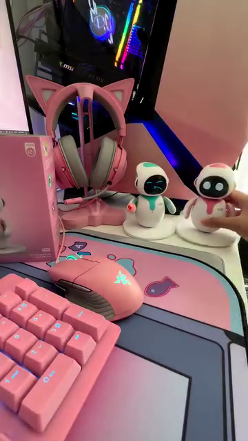 The robot features a two-tone color scheme, soft pink and white, that blends beautifully into pastel-themed or kawaii-inspired setups. It’s an ideal decorative piece that not only adds character to your space but also serves as an interactive gadget to lighten your mood.