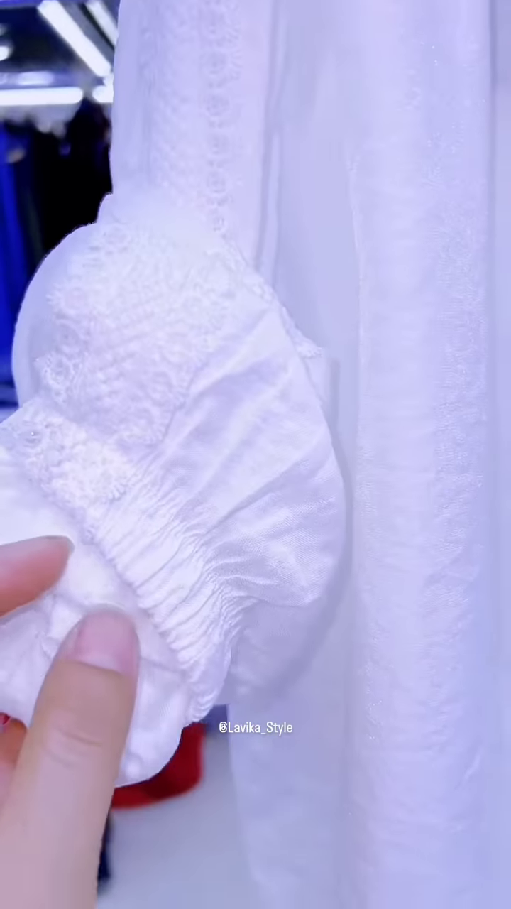 This image showcases a sophisticated and effortlessly elegant two-piece ensemble, presented for a potential customer in what appears to be a well-lit retail environment. The outfit is comprised of a long, flowing white overshirt and a simple tank top underneath, creating a stylish layered look. The overshirt is a key piece, crafted from a light and airy fabric that has a slightly crinkled or textured finish, giving it a relaxed and comfortable feel. Its length extends to a flattering silhouette, offering graceful movement and a breezy aesthetic. The long sleeves are a standout feature, designed with a beautiful, gathered detail at the cuffs that creates a subtle, ruffled or smocked effect. This touch of delicate craftsmanship adds a hint of romance and femininity to the garment.
