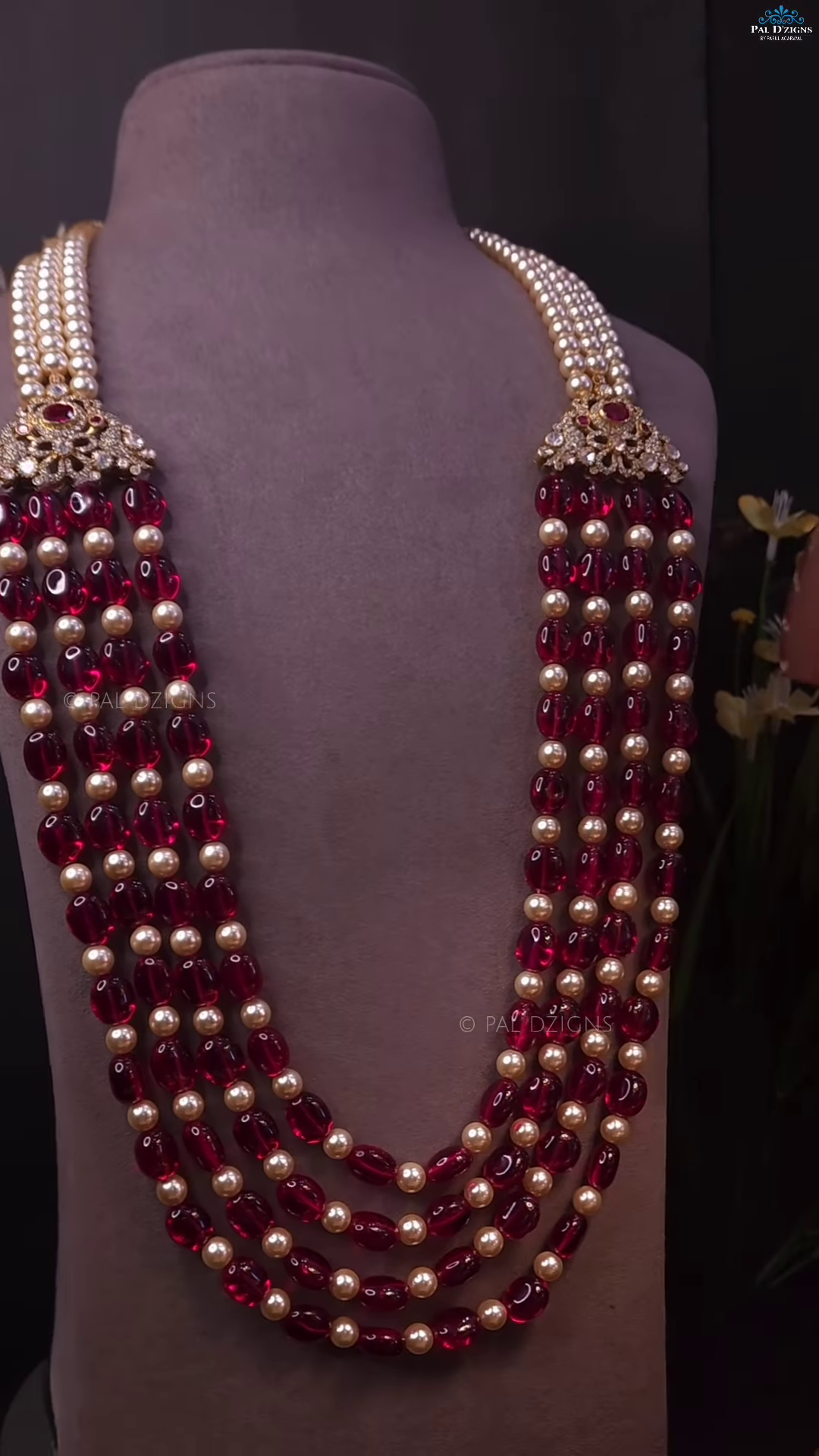 This multi-strand green beaded necklace with Polki-style accents is an exceptional choice for a wide array of events. It pairs beautifully with traditional Indian attire such as sarees, lehengas, and salwar suits, adding a touch of regal charm and vibrant color. It can also elevate a more contemporary evening gown, offering a unique blend of heritage and modern sophistication. The combination of the deep green, the lustrous gold tones, and the distinctive sparkle of the Polki-style accents ensures that this necklace is a true showstopper, making it a cherished addition to any discerning jewelry collection. It embodies a rich cultural aesthetic while maintaining a timeless appeal that will be admired for years to come.