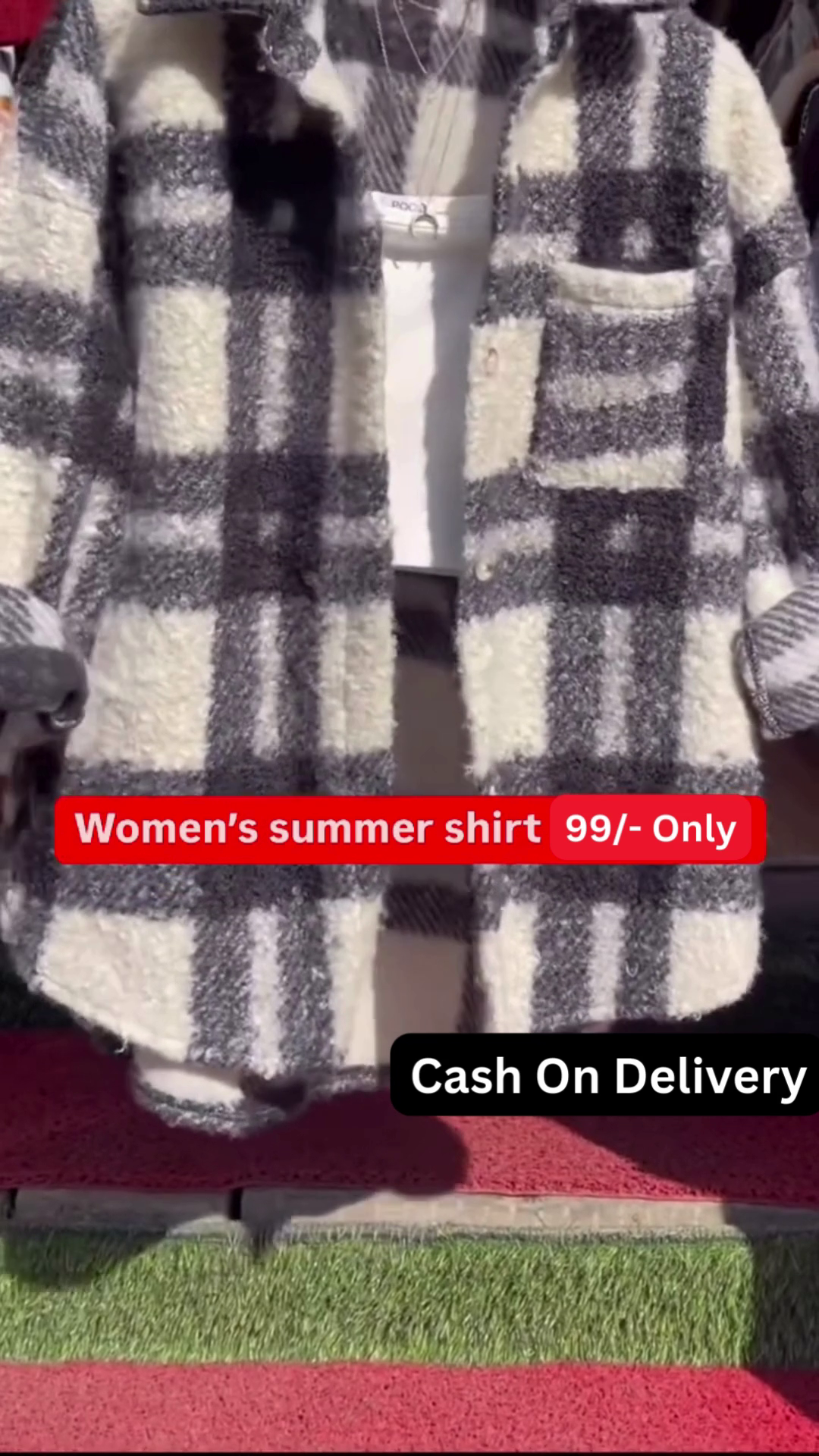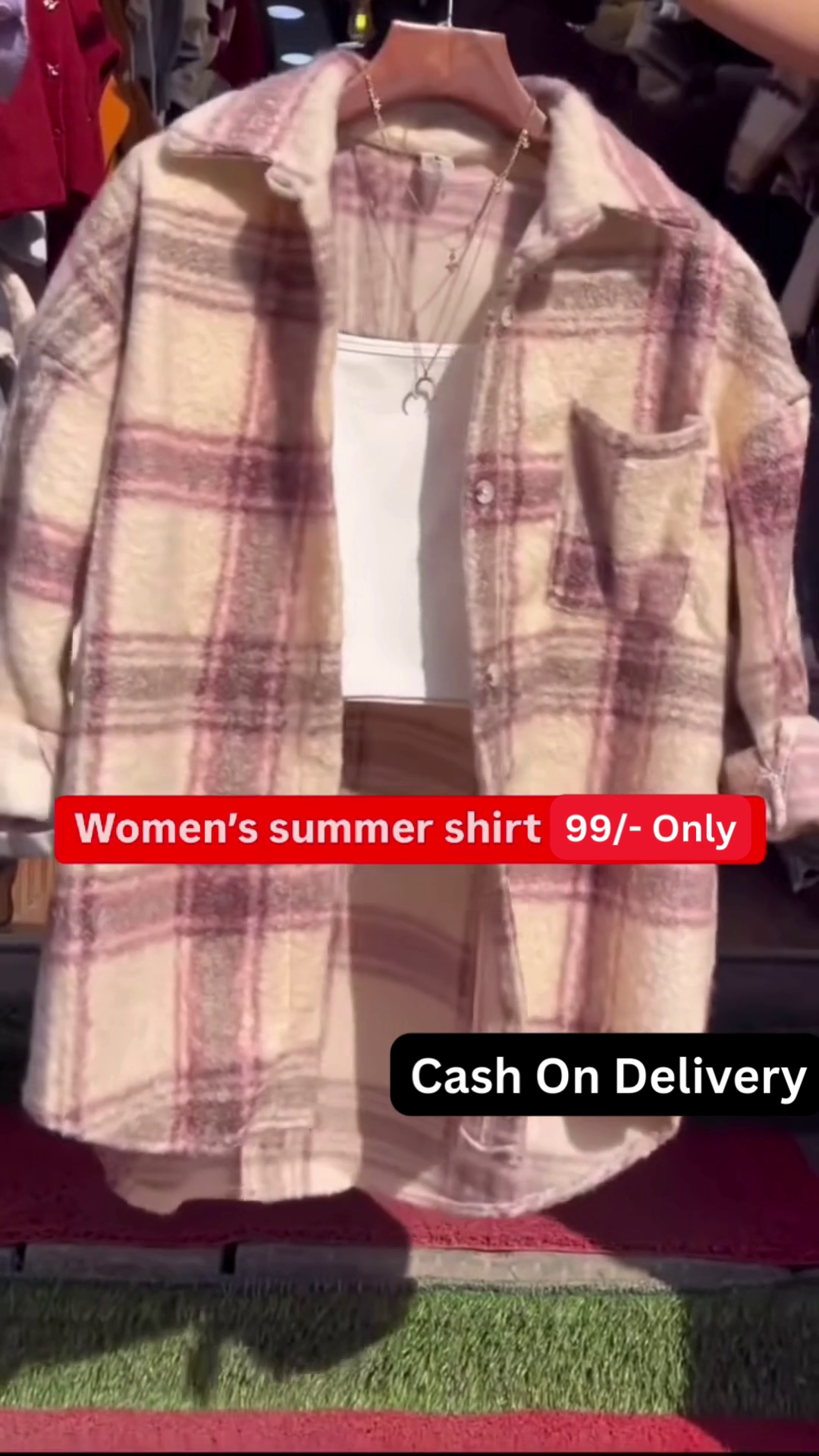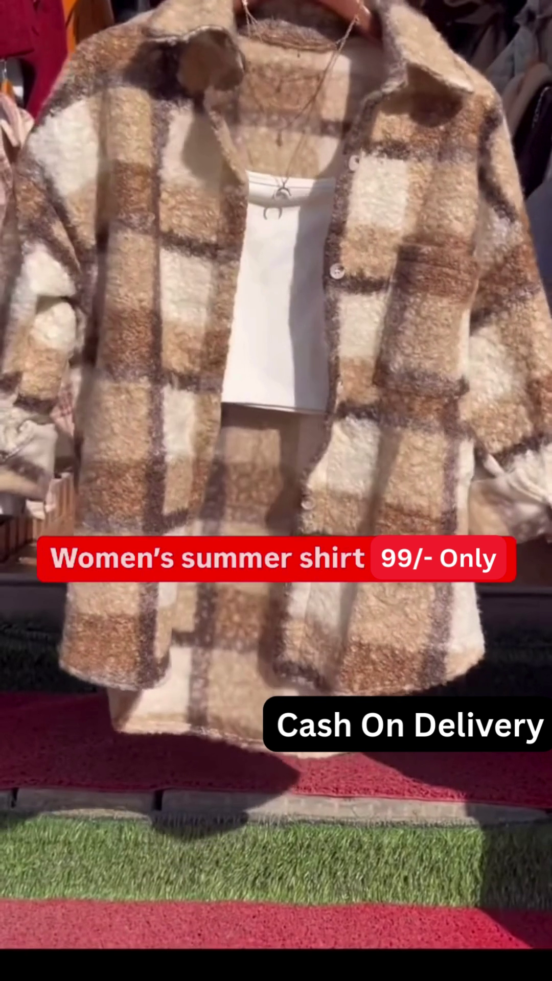 The overall impression is a comfortable and stylish look that is easy to wear for various occasions. The plaid shacket provides a touch of texture and pattern, while the layered top and delicate necklace add subtle details that elevate the outfit. This combination suggests a trendy yet effortless approach to everyday fashion. The availability in five colors, as indicated in the image context, further highlights the versatility of this shacket style, allowing consumers to choose options that best suit their personal preferences. This type of outfit is well-suited for transitional weather or for creating a cozy and stylish layered look.