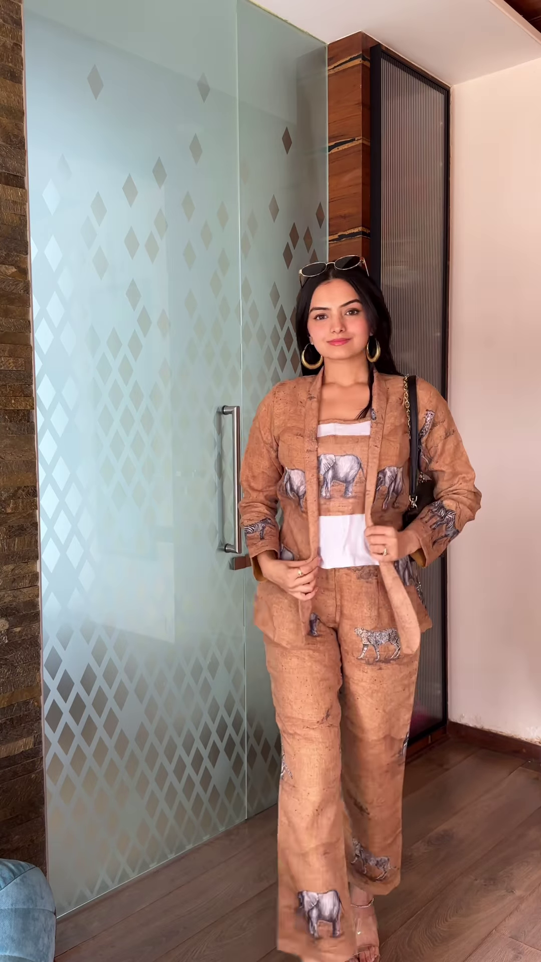 sophisticated and stylish women’s two-piece set, featuring an intricately embroidered jacket paired with high-waisted white trousers. The ensemble exudes a chic and fashionable vibe, perfect for making a statement with its unique detailing and contrasting colors.